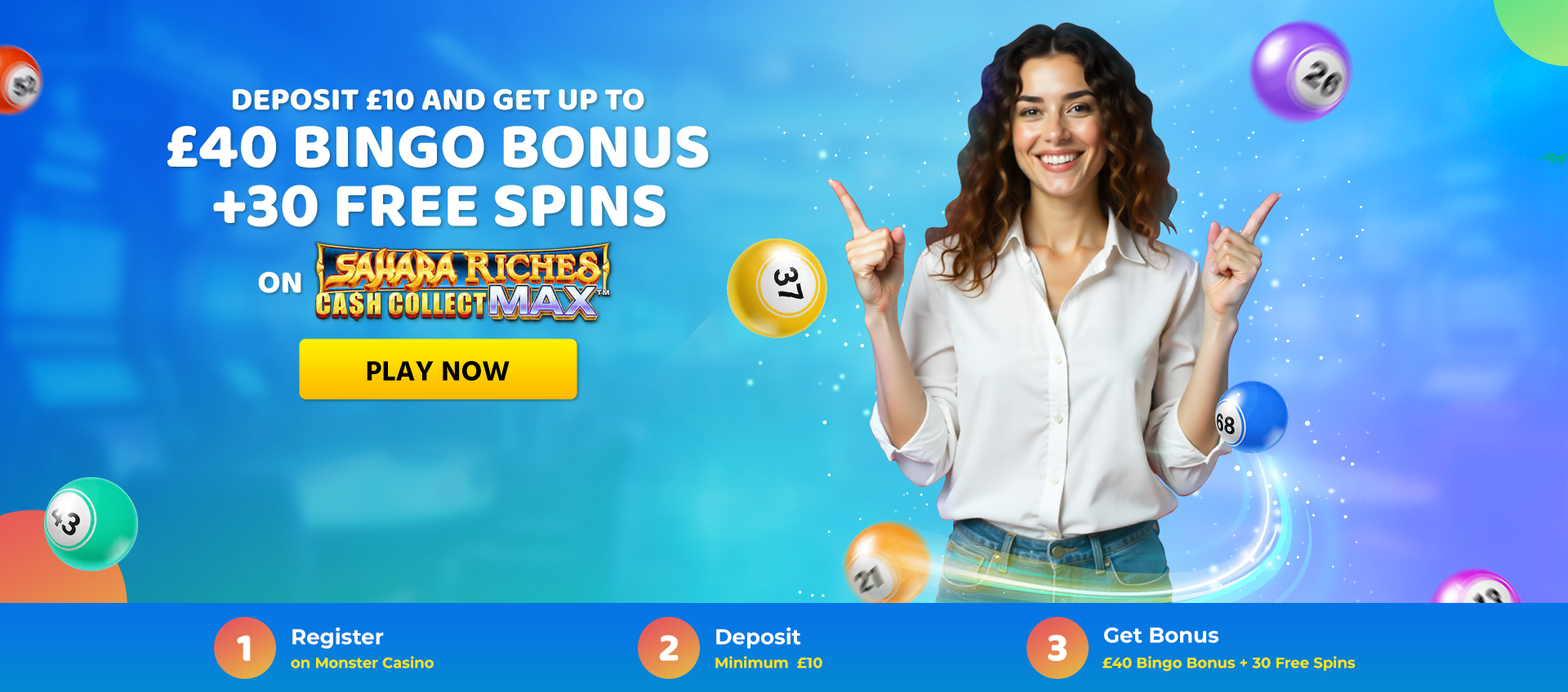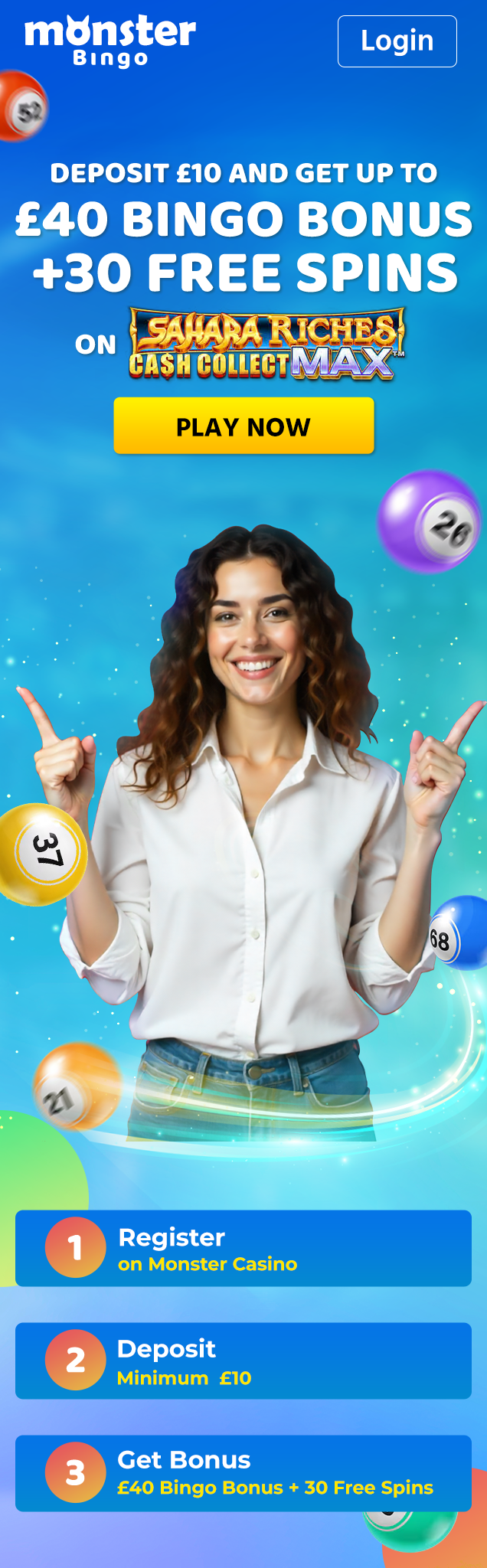 2. Enjoy our Welcome offer of Deposit £10 and Get £40 + 30 Free Spins on Sahara Riches Cash Collect Max upon making your first deposit.