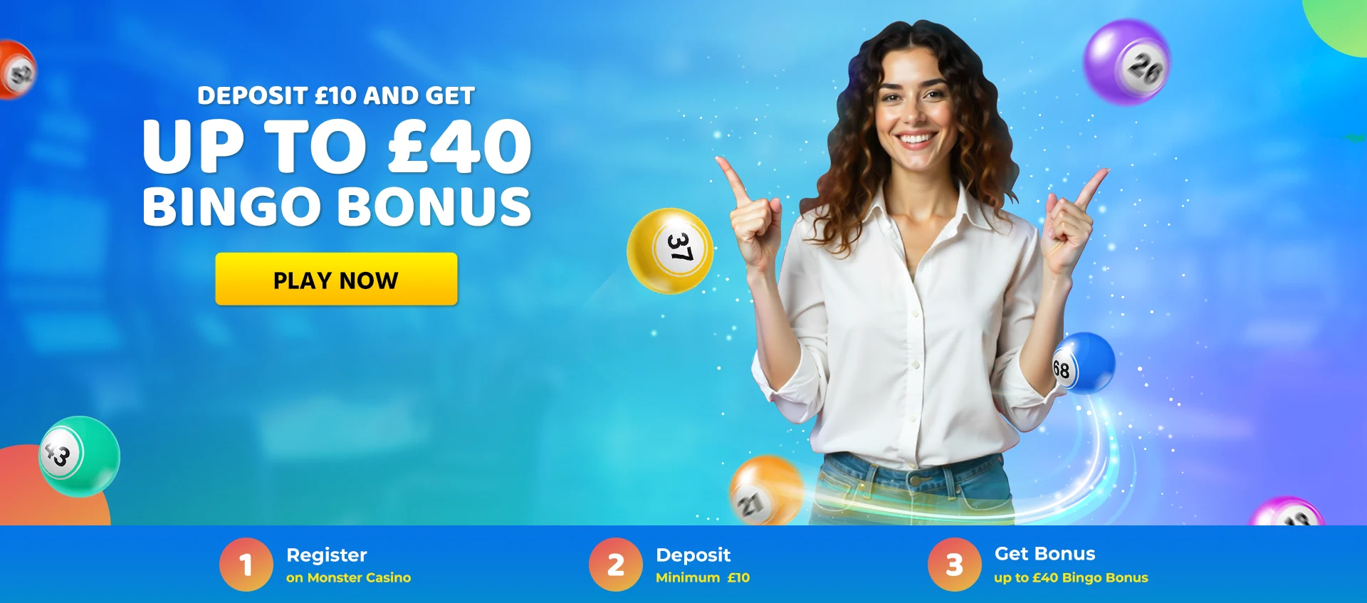 2. Enjoy our Welcome offer of Deposit £10 and Get £40 Bingo Bonus upon making your first deposit.