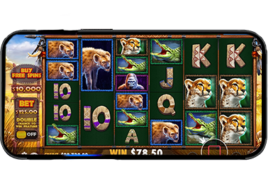 You can now experience the most immersive casino slot gaming at Monster Mobile Casino. Our mobile casino is aimed at delivering an on-demand gaming experience on the move, regardless of the activities you are up to. So, in any case, you can always launch Great Rhino Megaways on your portable device supported by Android or iOS and start gaming on the go.