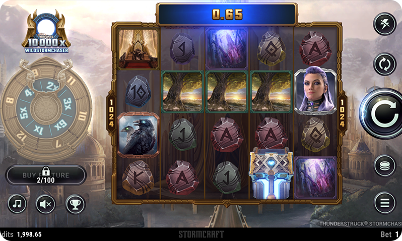 In Thunderstruck Stormchaser, the theme is centered around Norse mythology, featuring the legendary Thor, his hammer and other characters and elements that blend in with the theme. The storyline is created around Thor and Thyra, facing off against each other. The backdrop features a lively atmosphere, depicting the charming landscape of Asgard. The plot takes place on a basic 5×4 layout with 1024 ways to create a win. Featuring high-quality graphics and highlighting animations, the Norse realm is brought to life. The soundtrack is designed to immerse players in the game’s theme, featuring an orchestral blend of rock and metal.
